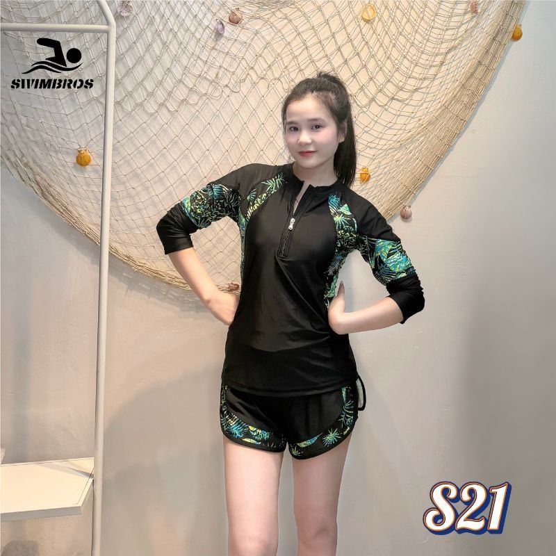 Với thiết kế áo tay dài kết hợp quần đùi đen, S21 mang đậm phong cách Hàn Quốc trẻ trung, vừa giúp bảo vệ làn da tối đa trước tia UV, vừa mang lại sự kín đáo, tự tin tuyệt đối cho người mặc.