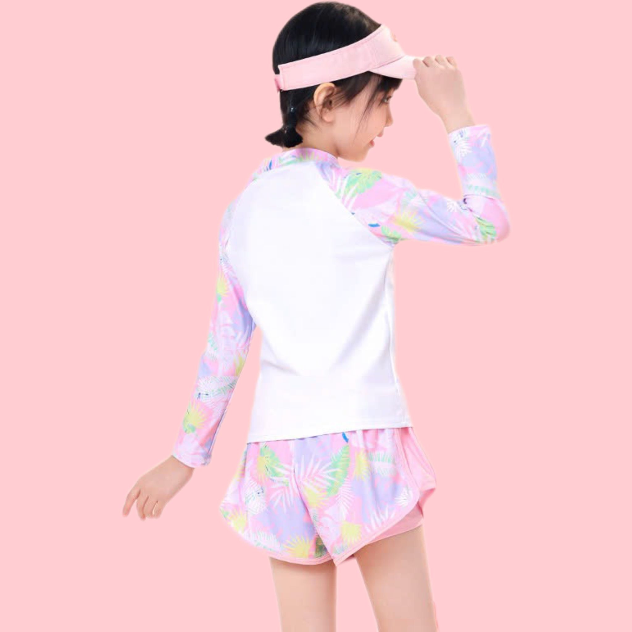 Đồ Bơi Tay dài Bé Gái Baby Shark– Quần Đùi Hoa Nhỏ, Thoải Mái & An Toàn Khi Bơi Lội