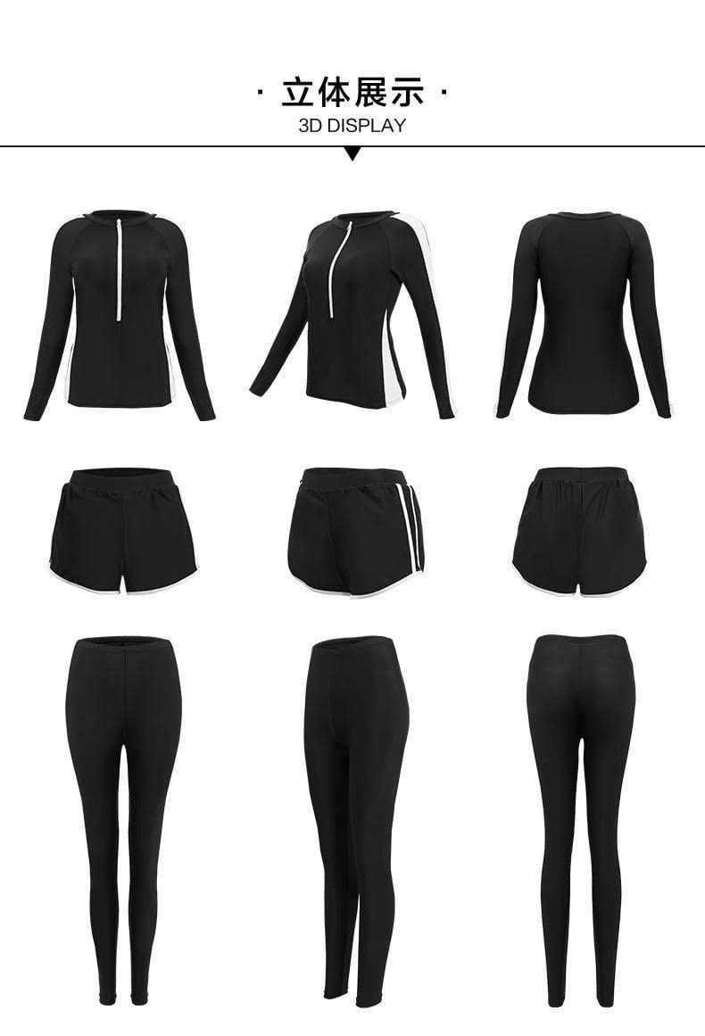 👙 Thiết kế 3 món tiện lợi: Áo tay dài chống nắng, qquần Dài ôm và quần ngắn bên ngoài giúp bạn tự tin diện cả khi đi biển hay tham gia hoạt động thể thao.