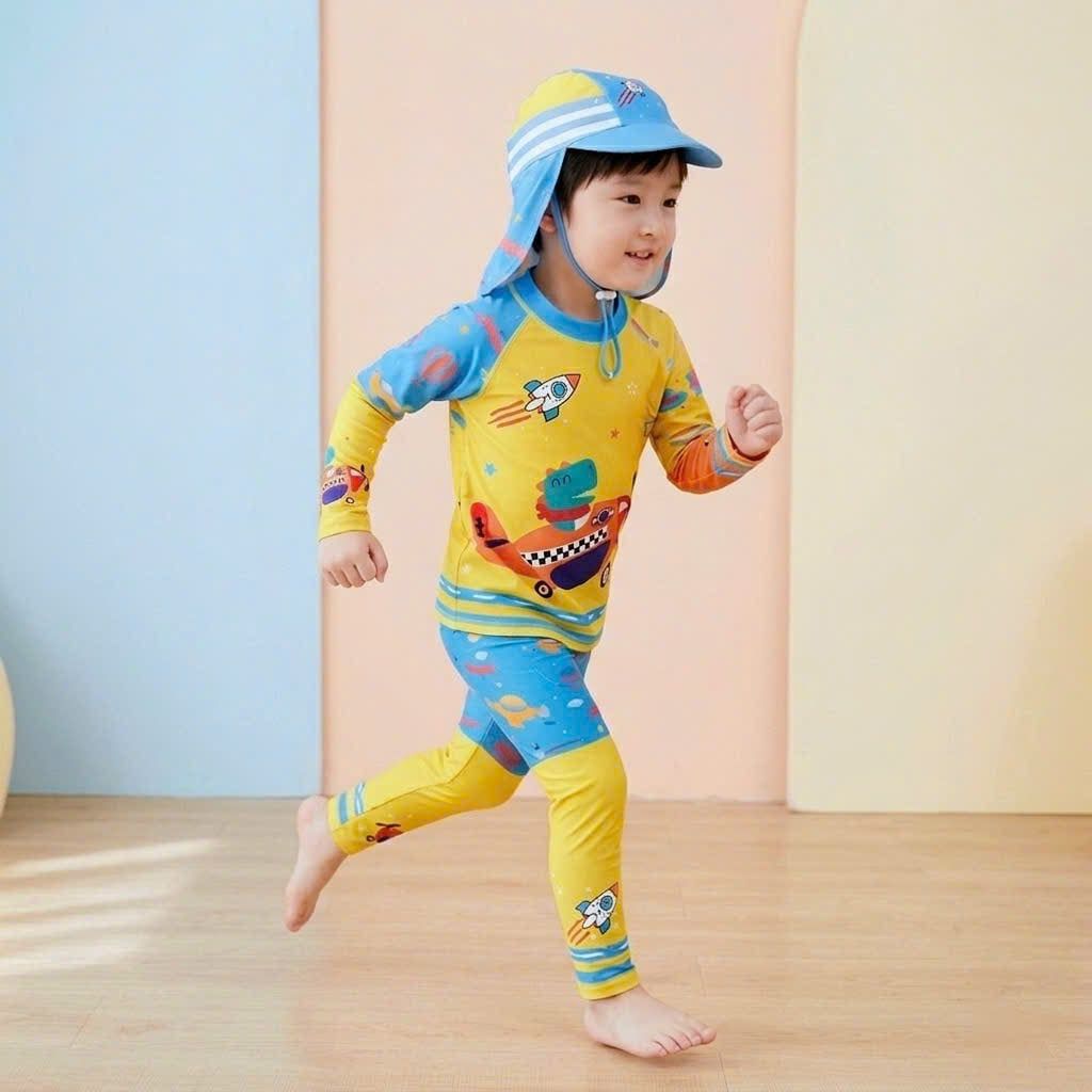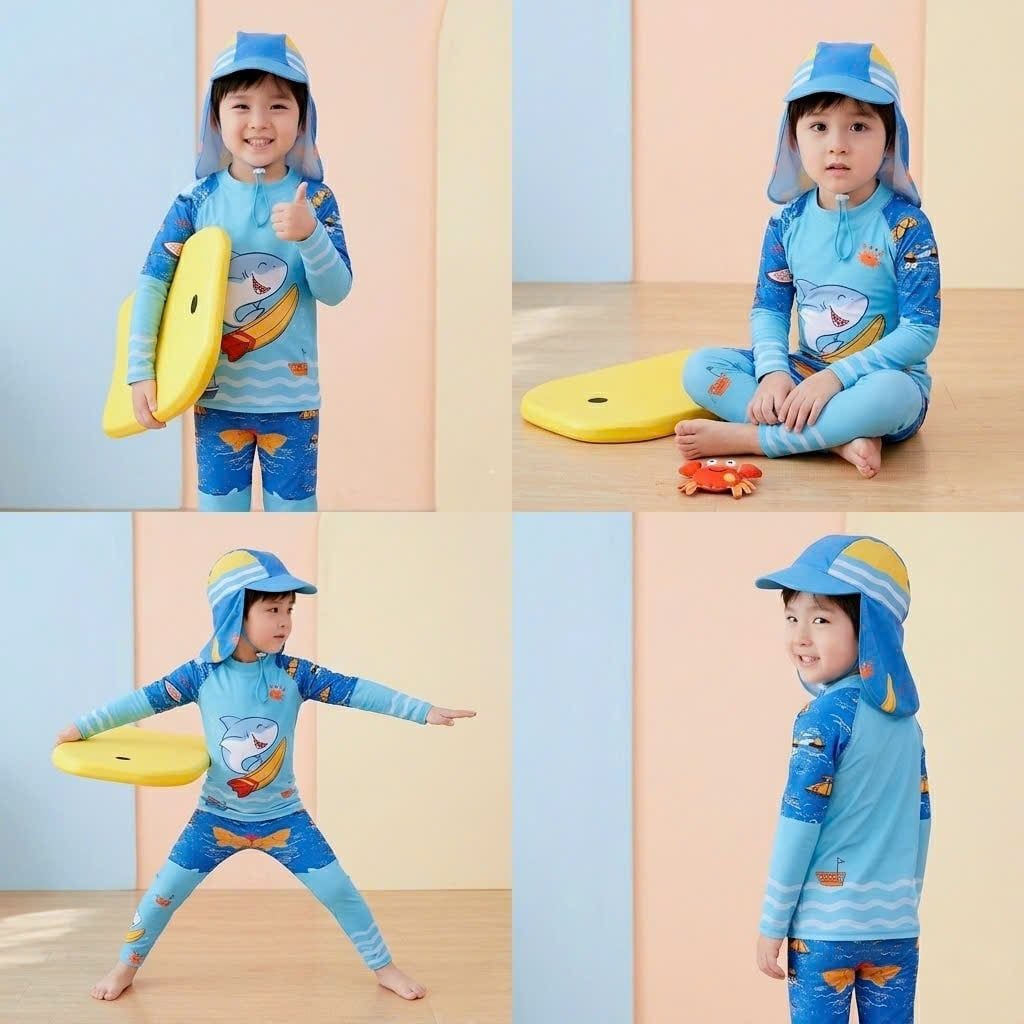 T88 - Set Bơi Tay Dài Quần Dài Kèm Nón Che Gáy Bé Trai - Baby Shark Shop